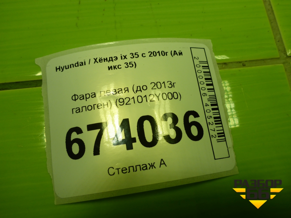 Фара левая (до 2013г галоген) (921012Y000) для Hyundai ix 35 с 2010г (Ай икс 35) в Уфе