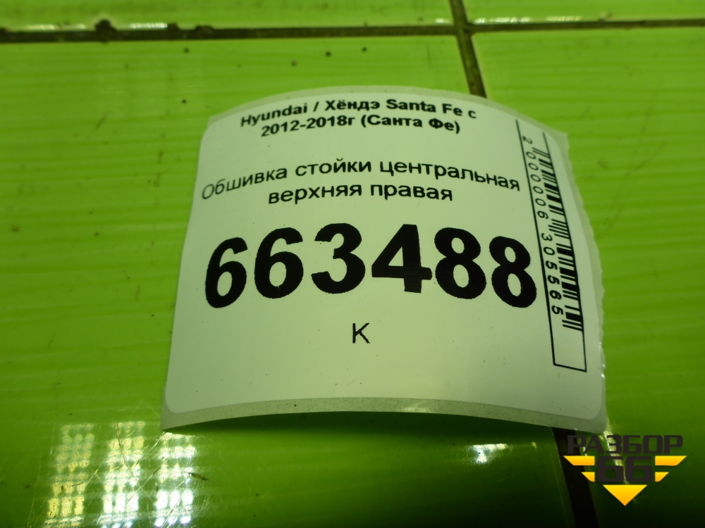 Обшивка стойки центральная верхняя правая (858402W200) для Hyundai Santa Fe с 2012-2018г (Санта Фе) в Уфе