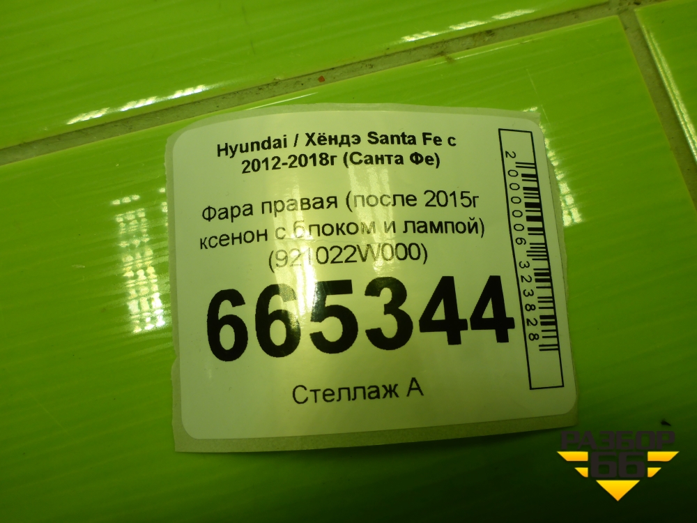 Фара правая (до 2015г ксенон с блоком и лампой) (921022W000) для Hyundai Santa Fe с 2012-2018г (Санта Фе) в Уфе