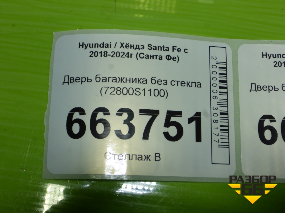 Дверь багажника без стекла (72800S1100) для Hyundai Santa Fe с 2018-2024г (Санта Фе) в Уфе