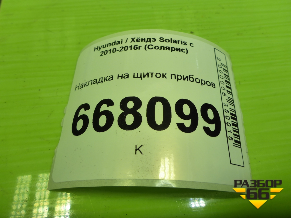 Накладка на щиток приборов (848314L000) для Hyundai Solaris с 2010-2016г (Солярис) в Уфе