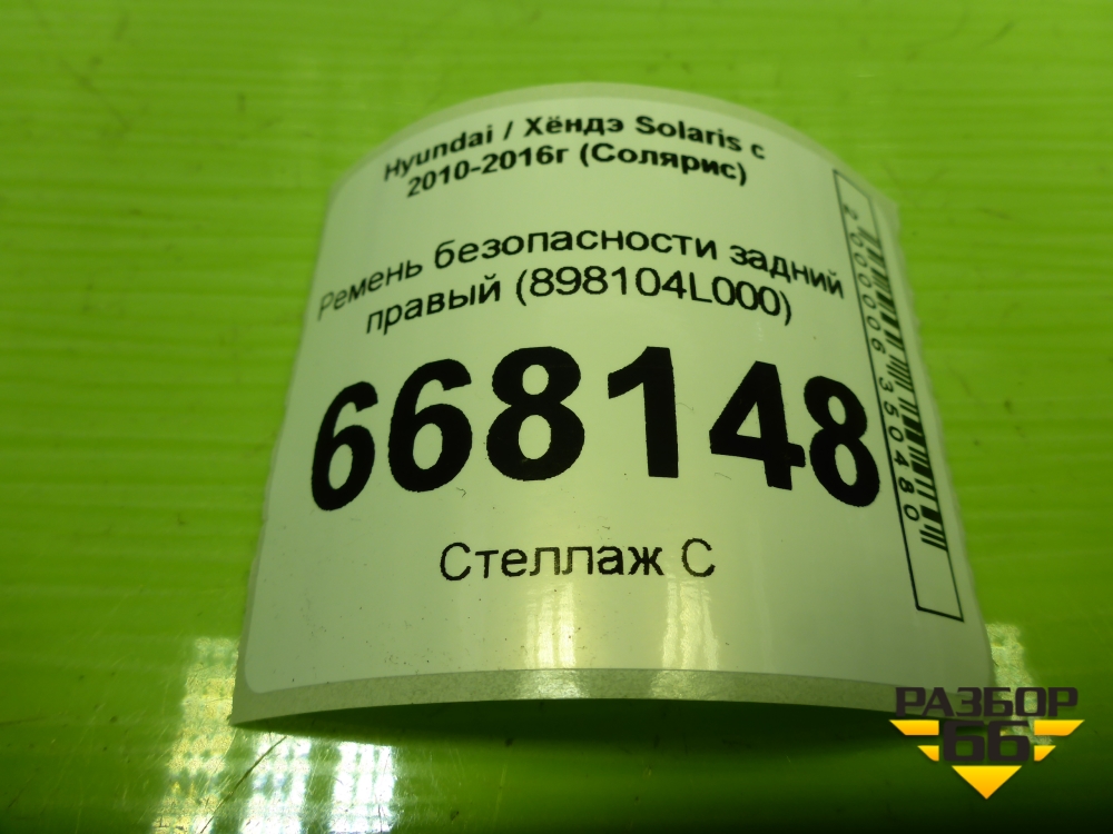Ремень безопасности задний правый (898104L000) для Hyundai Solaris с 2010-2016г (Солярис) в Уфе