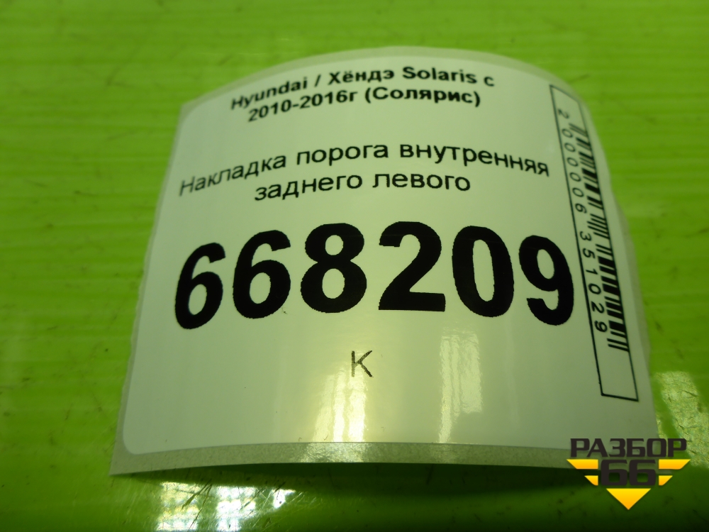Накладка порога внутренняя заднего левого (858761R000) для Hyundai Solaris с 2010-2016г (Солярис) в Уфе