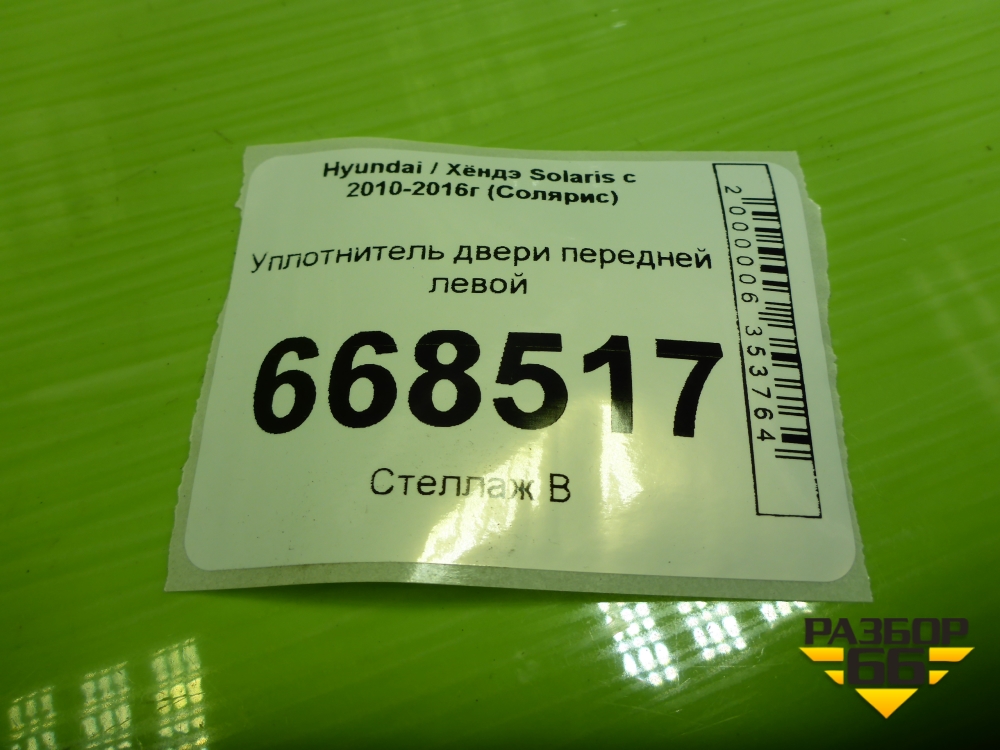 Уплотнитель двери передней левой для Hyundai Solaris с 2010-2016г (Солярис) в Уфе