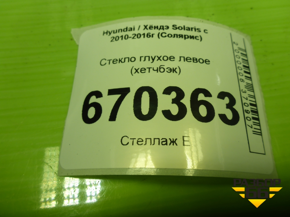 Стекло глухое левое (хетчбэк) для Hyundai Solaris с 2010-2016г (Солярис) в Уфе