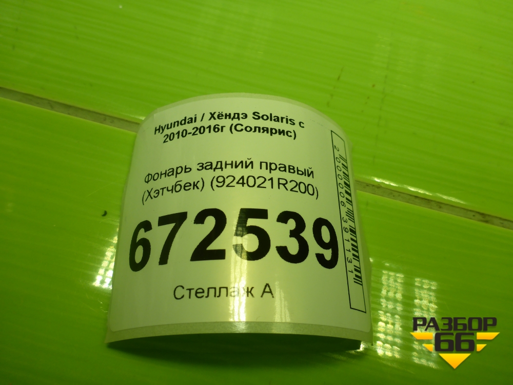 Фонарь задний правый (хэтчбек) (924021R200) для Hyundai Solaris с 2010-2016г (Солярис) в Уфе