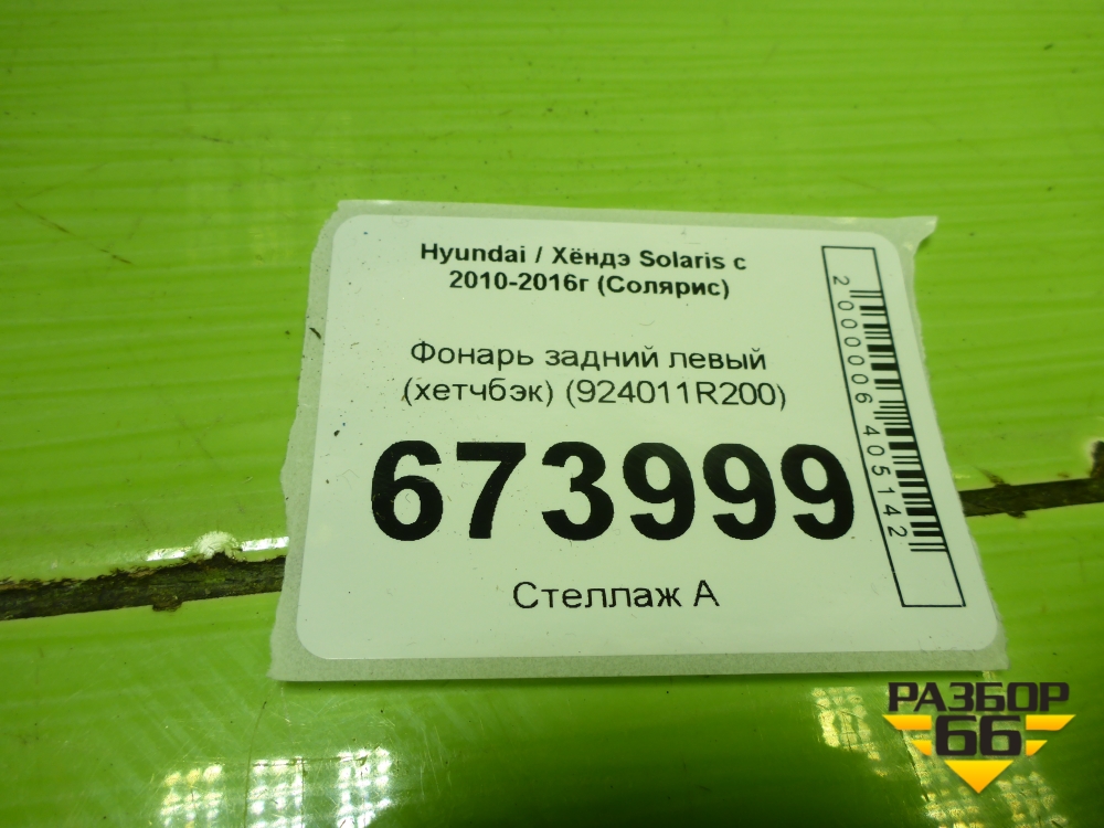 Фонарь задний левый (хетчбэк) (924011R200) для Hyundai Solaris с 2010-2016г (Солярис) в Уфе