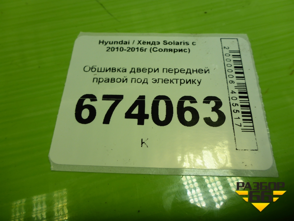 Обшивка двери передней правой под электрику (823604L010) для Hyundai Solaris с 2010-2016г (Солярис) в Уфе