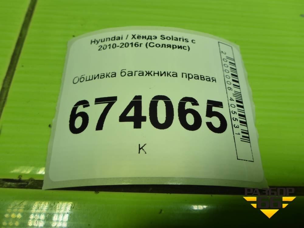 Обшивка багажника правая (хетчбэк) (857404L500) для Hyundai Solaris с 2010-2016г (Солярис) в Уфе