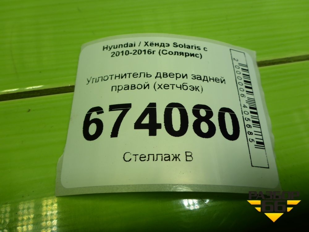 Уплотнитель двери задней правой (хетчбэк) для Hyundai Solaris с 2010-2016г (Солярис) в Уфе