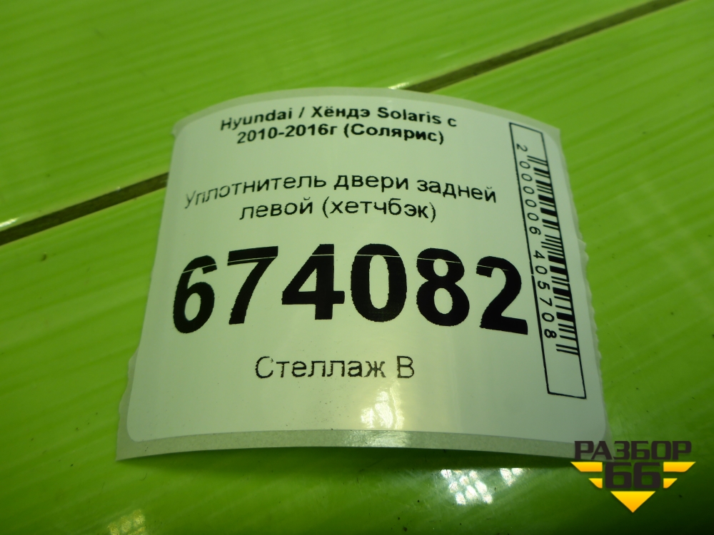 Уплотнитель двери задней левой (хетчбэк) для Hyundai Solaris с 2010-2016г (Солярис) в Уфе