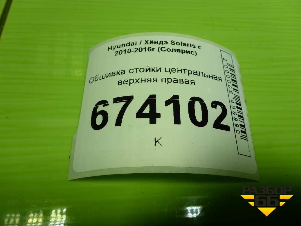 Обшивка стойки центральная верхняя правая (858401R100) для Hyundai Solaris с 2010-2016г (Солярис) в Уфе