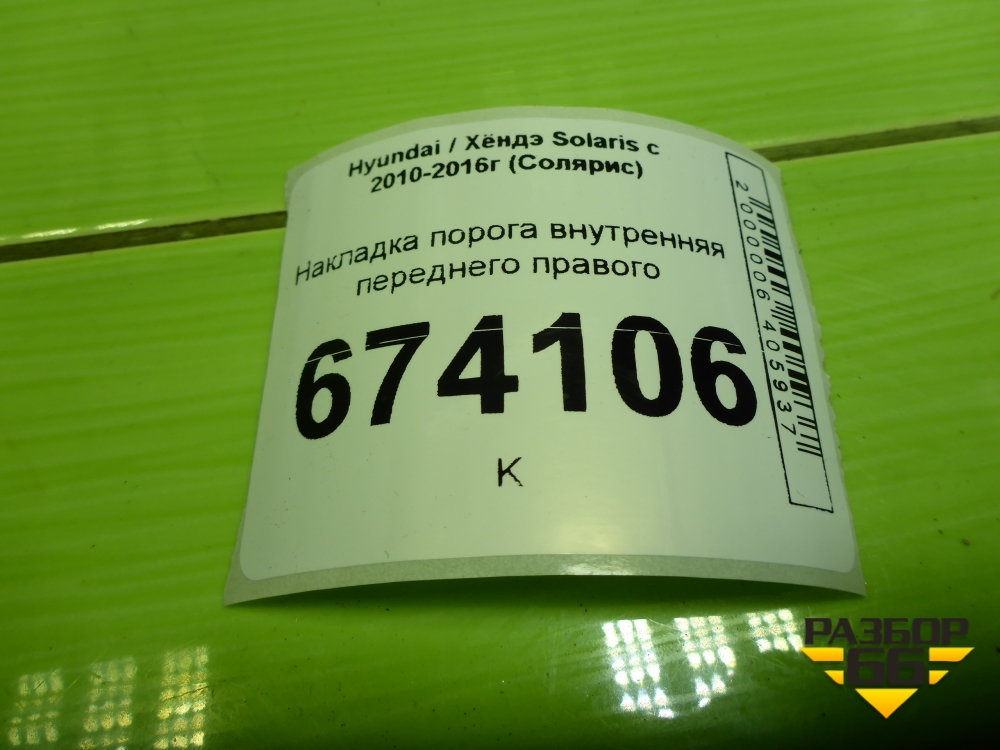 Накладка порога внутренняя переднего правого (858811R000) для Hyundai Solaris с 2010-2016г (Солярис) в Уфе
