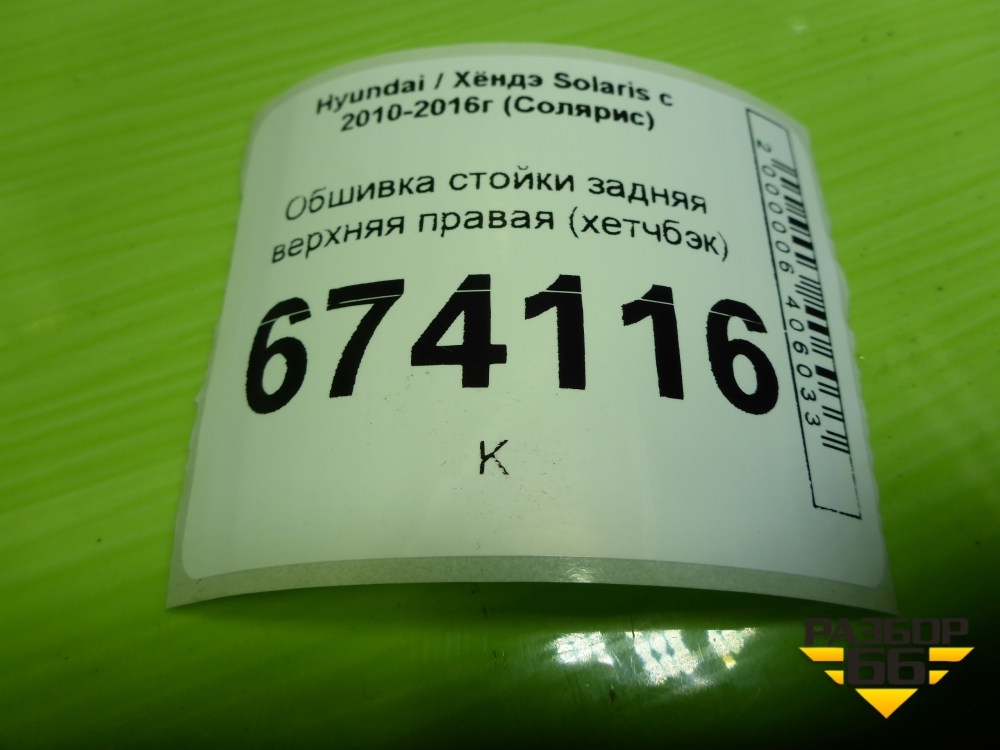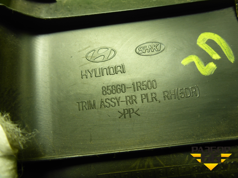Обшивка стойки задняя верхняя правая (хетчбэк) (858601R500) для Hyundai Solaris с 2010-2016г (Солярис) в Уфе