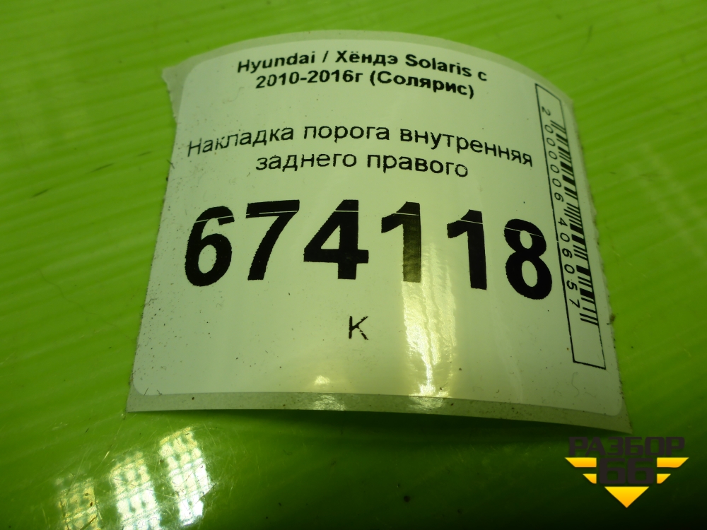 Накладка порога внутренняя заднего правого (858861R000) для Hyundai Solaris с 2010-2016г (Солярис) в Уфе