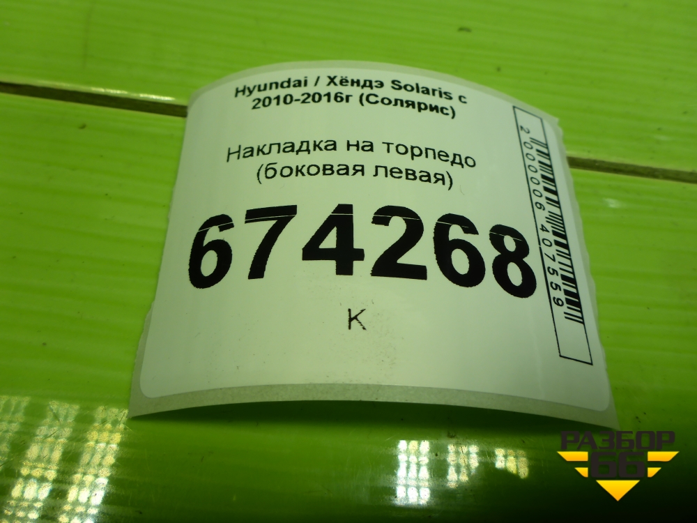 Накладка на торпедо (боковая левая) (847654L000) для Hyundai Solaris с 2010-2016г (Солярис) в Уфе