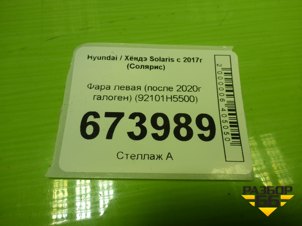 Фара левая (после 2020г галоген) (92101H5500) для Hyundai Solaris с 2017г (Солярис) в Уфе