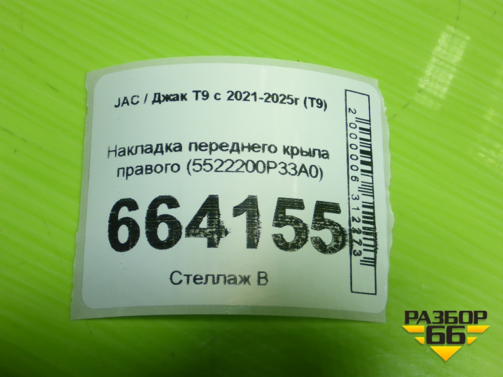 Накладка переднего крыла правого (5522200P33A0) для JAC T9 с 2021-2025г (Т9) в Уфе