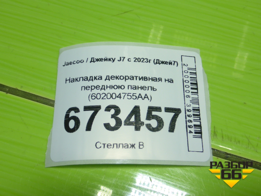 Накладка декоративная на переднюю панель (602004755AA) для Jaecoo J7 с 2023г (Джей7) в Уфе