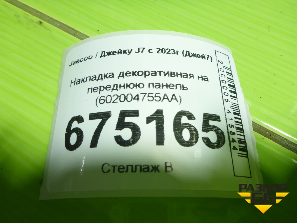 Накладка декоративная на переднюю панель (602004755AA) для Jaecoo J7 с 2023г (Джей7) в Уфе
