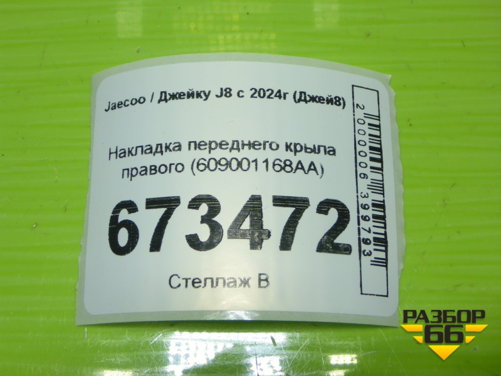 Накладка переднего крыла правого (609001168AA) для Jaecoo J8 c 2024г (Джей8) в Уфе