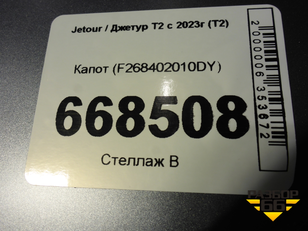 Капот (F268402010DY) для Jetour T2 с 2023г (Т2) в Уфе