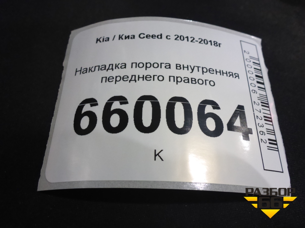 Накладка порога внутренняя переднего правого (5ти дверный кузов) (85881A2000) для Kia Ceed с 2012-2018г (Сид 2) в Уфе