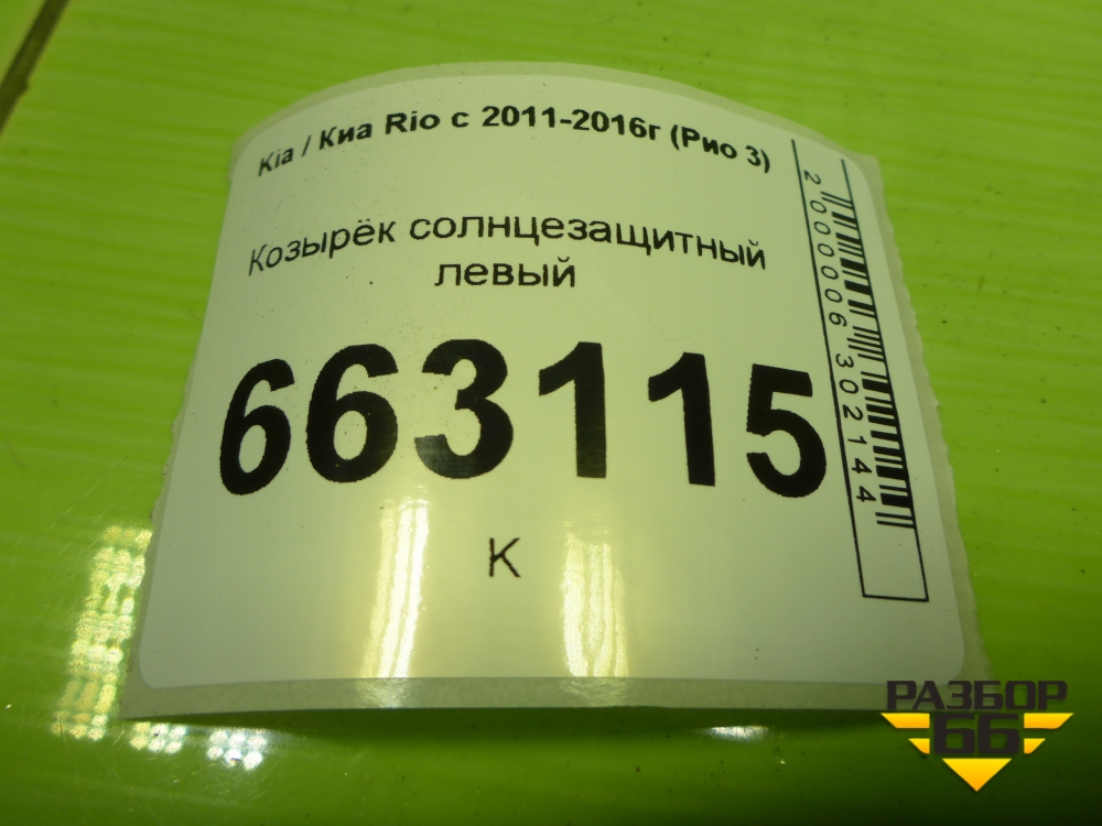 Козырёк солнцезащитный левый для Kia Rio с 2011-2016г (Рио 3) в Уфе