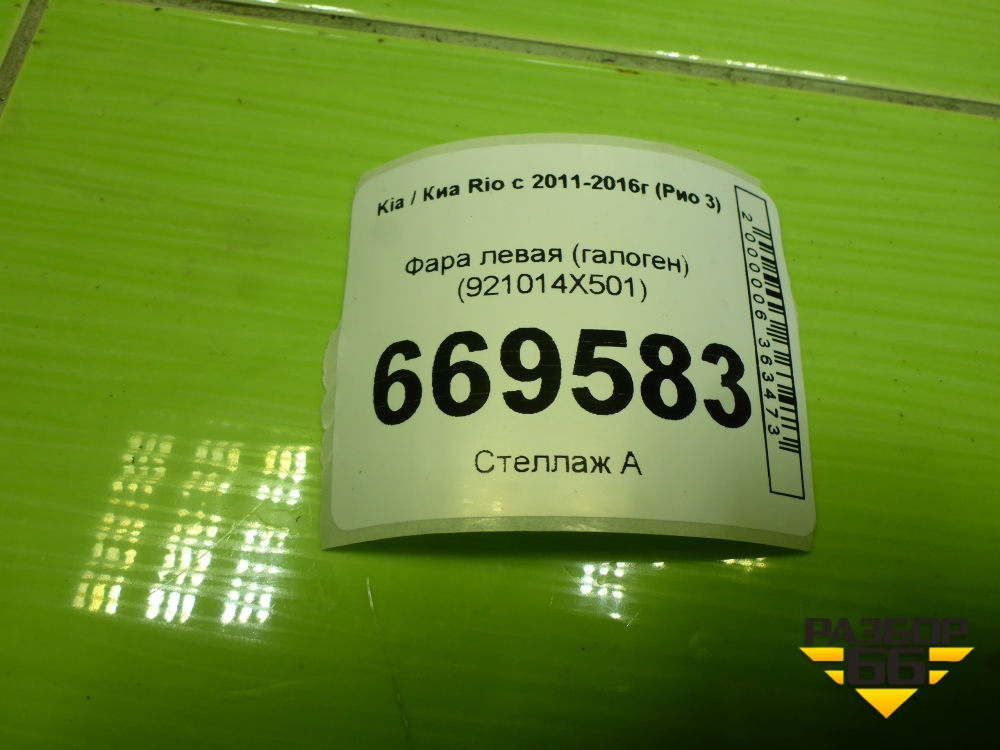 Фара левая (галоген) (921014X501) для Kia Rio с 2011-2016г (Рио 3) в Уфе