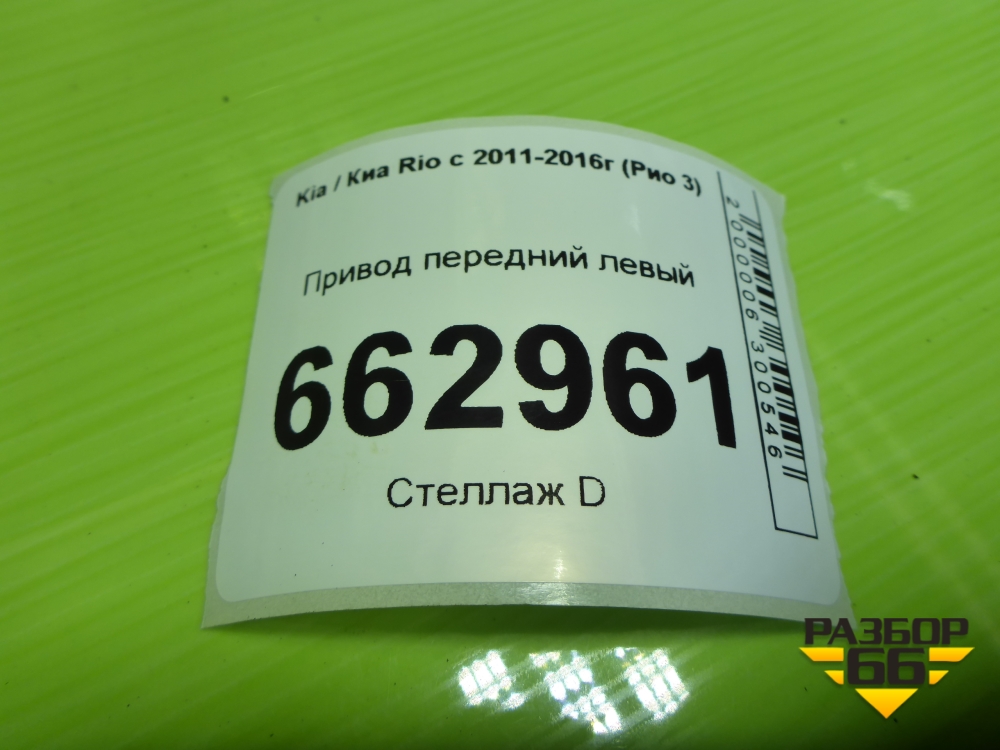 Привод передний левый (1.6л G4FC МКПП шлиц наруж-25,внутр-25) (495001R000) для Kia Rio с 2011-2016г (Рио 3) в Уфе