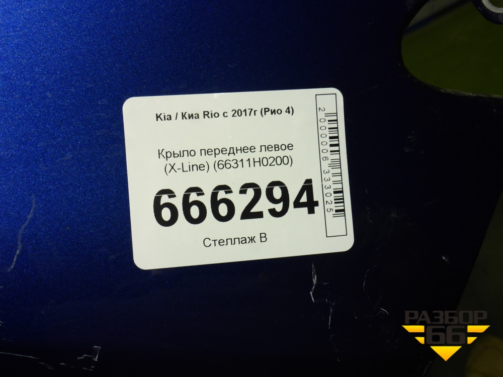 Крыло переднее левое (X-Line) (66311H0200) для Kia Rio с 2017г (Рио 4) в Уфе