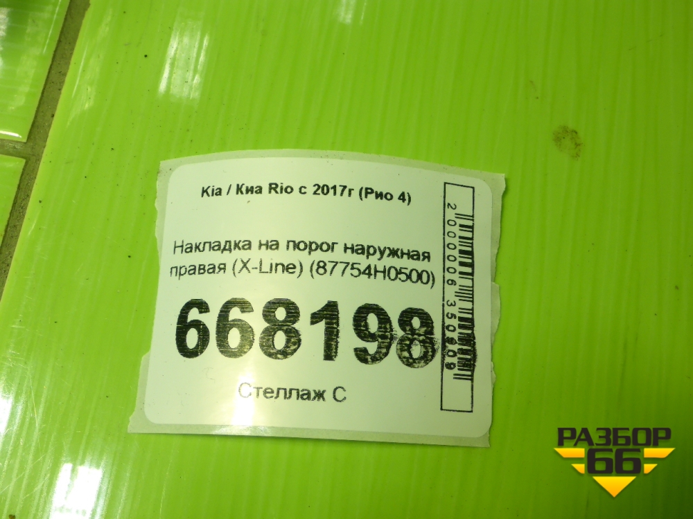 Накладка на порог наружная правая (X-Line) (87754H0500) для Kia Rio с 2017г (Рио 4) в Уфе
