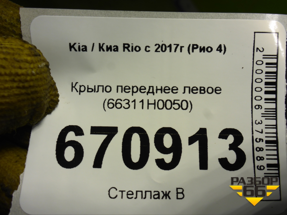 Крыло переднее левое (66311H0050) для Kia Rio с 2017г (Рио 4) в Уфе