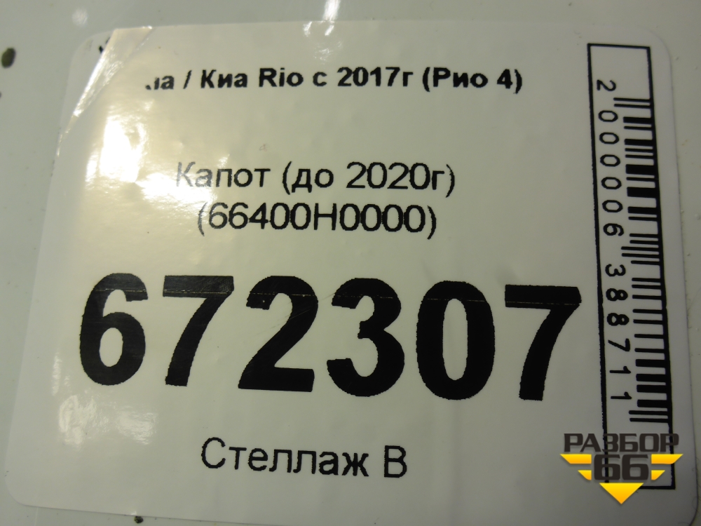 Капот (до 2020г) (66400H0000) для Kia Rio с 2017г (Рио 4) в Уфе