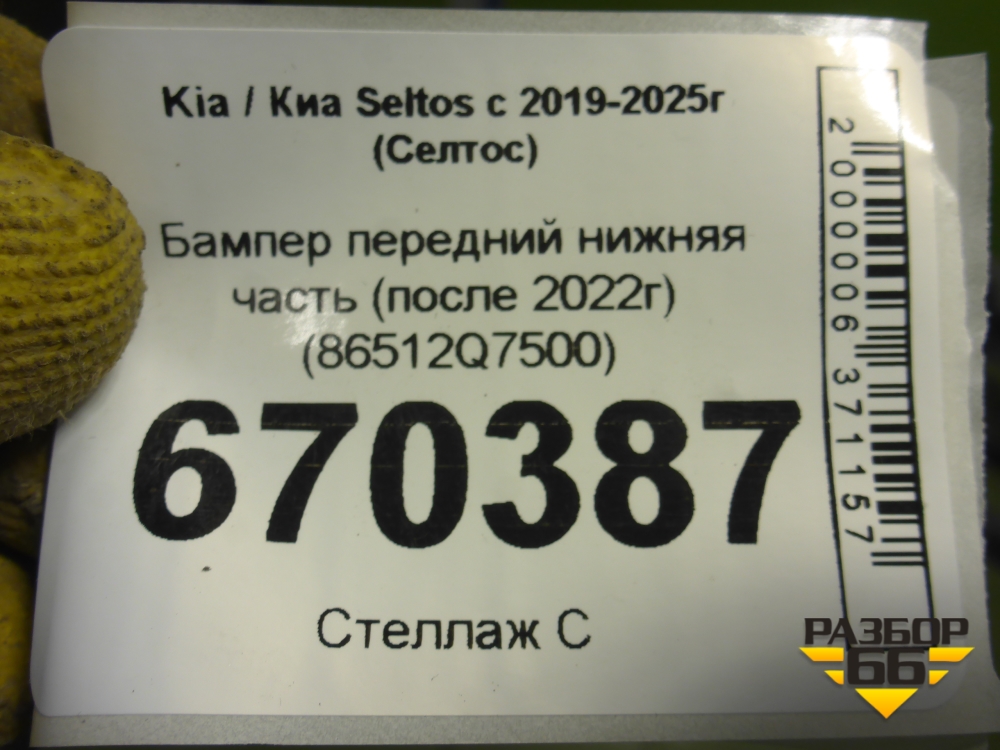 Бампер передний нижняя часть (после 2022г) (86512Q7500) для Kia Seltos с 2019-2025г (Селтос) в Уфе