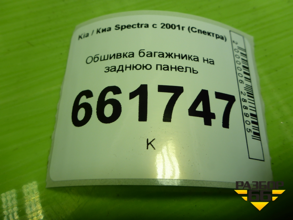 Обшивка багажника на заднюю панель (0K2N268961A) для Kia Spectra с 2001г (Спектра) в Уфе