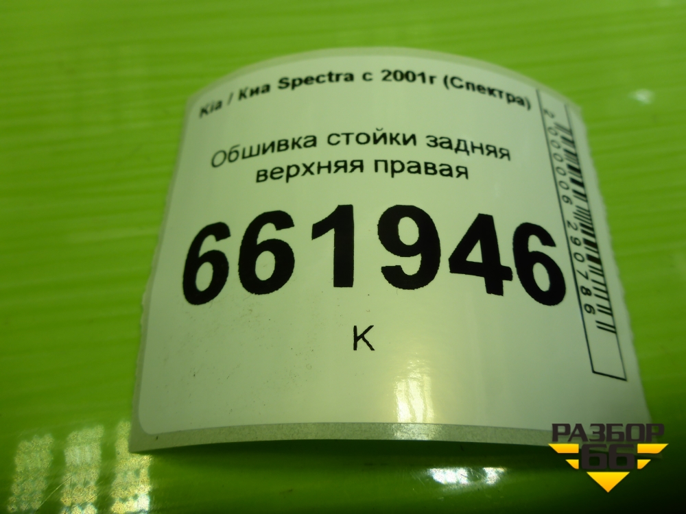 Обшивка стойки задняя верхняя правая (22725402270) для Kia Spectra с 2001г (Спектра) в Уфе