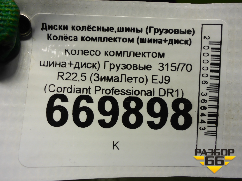 Колесо комплектом (шина+диск) 315/70 R22,5 (ЗимаЛето) EJ9 (CordiantProfessionalDR1) в Уфе