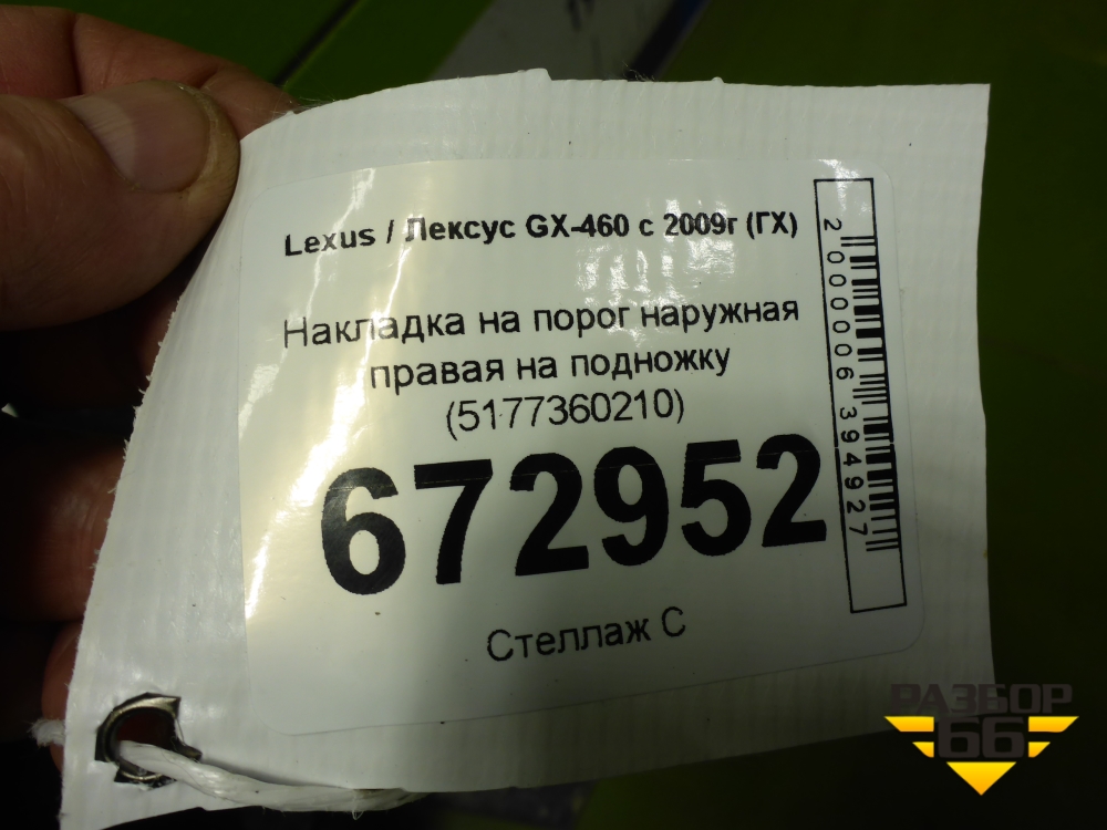 Накладка на порог наружная правая на подножку (5177360210) для Lexus GX-460 с 2009г (ГХ) в Уфе