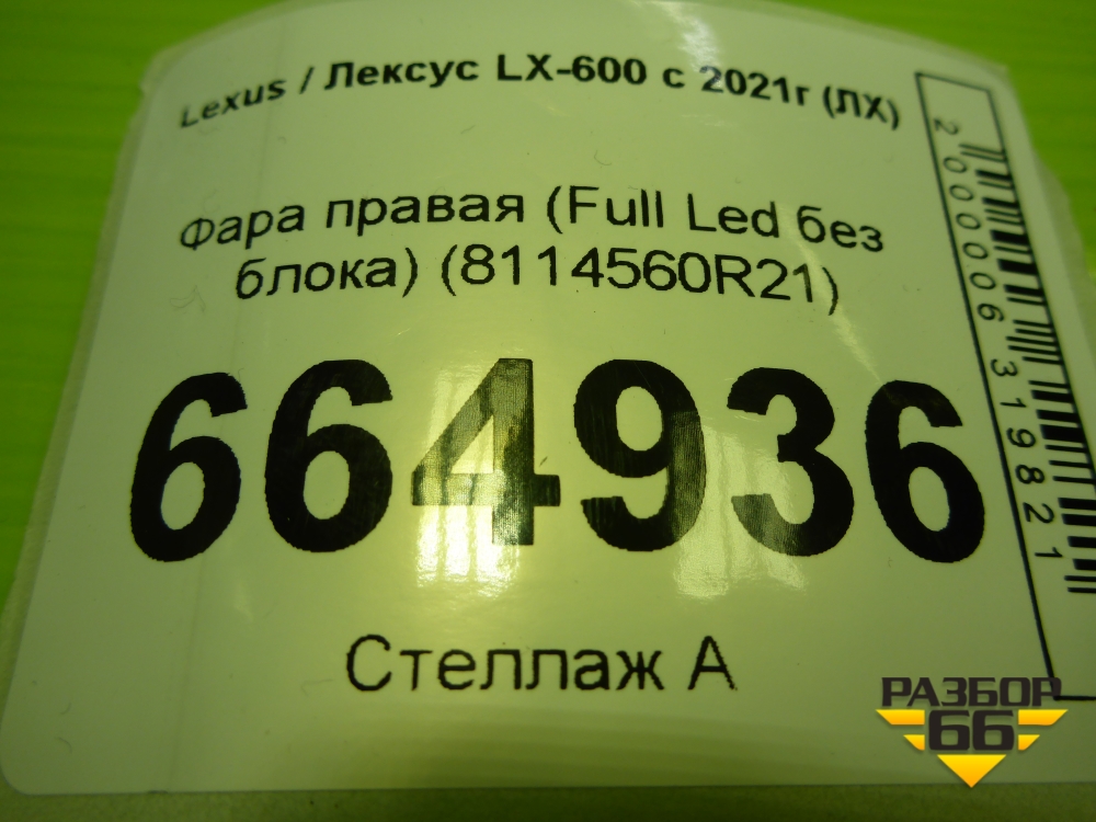 Фара правая (Full Led без блока) (8114560R21) для Lexus LX-600 с 2021г (ЛХ) в Уфе
