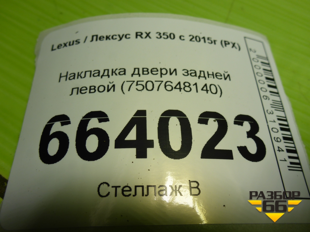 Накладка двери задней левой (7507648140) для Lexus RX 350 c 2015г (РХ) в Уфе