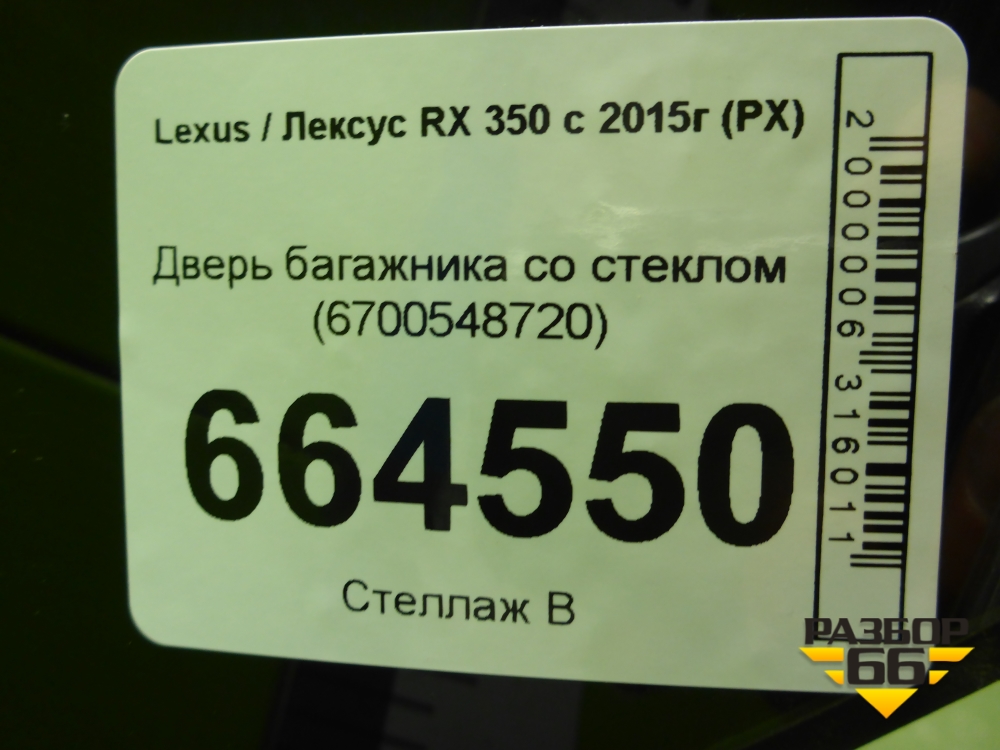 Дверь багажника со стеклом (6700548720) для Lexus RX 350 c 2015г (РХ) в Уфе