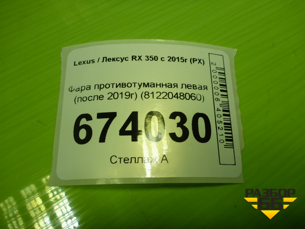 Фара противотуманная левая (после 2019г) (8122048060) для Lexus RX 350 c 2015г (РХ) в Уфе