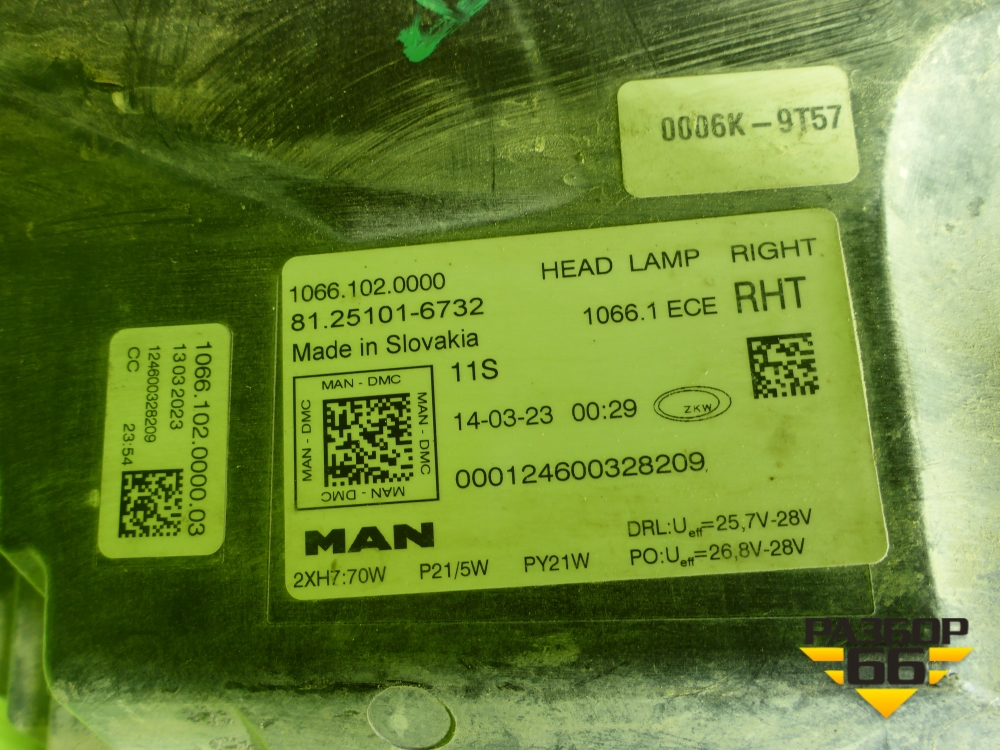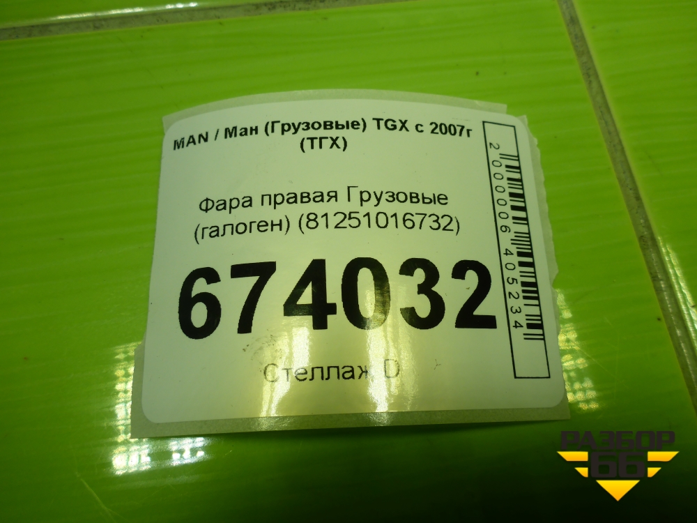Фара правая (галоген) (81251016732) для MAN TGX с 2007г (ТГХ) в Уфе
