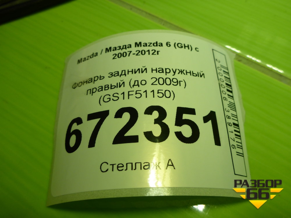 Фонарь задний наружный правый (до 2009г) (GS1F51150) для Mazda Mazda 6 (GH) с 2007-2012г в Уфе