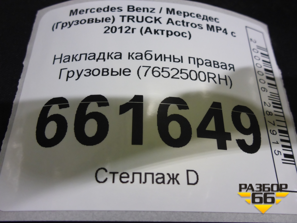 Накладка кабины правая (7652500RH) для Mercedes Benz TRUCK Actros MP4 с 2012г (Актрос) в Уфе