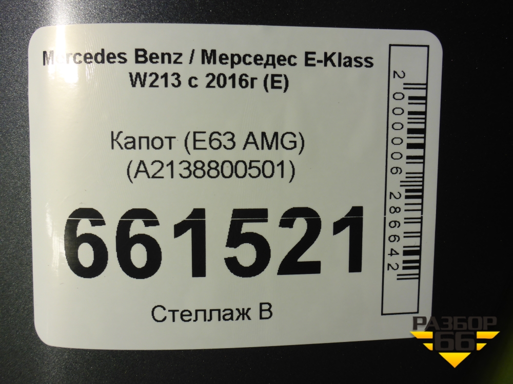 Капот (E63 AMG) (A2138800501) для Mercedes Benz E-Klass W213 с 2016г (Е) в Уфе