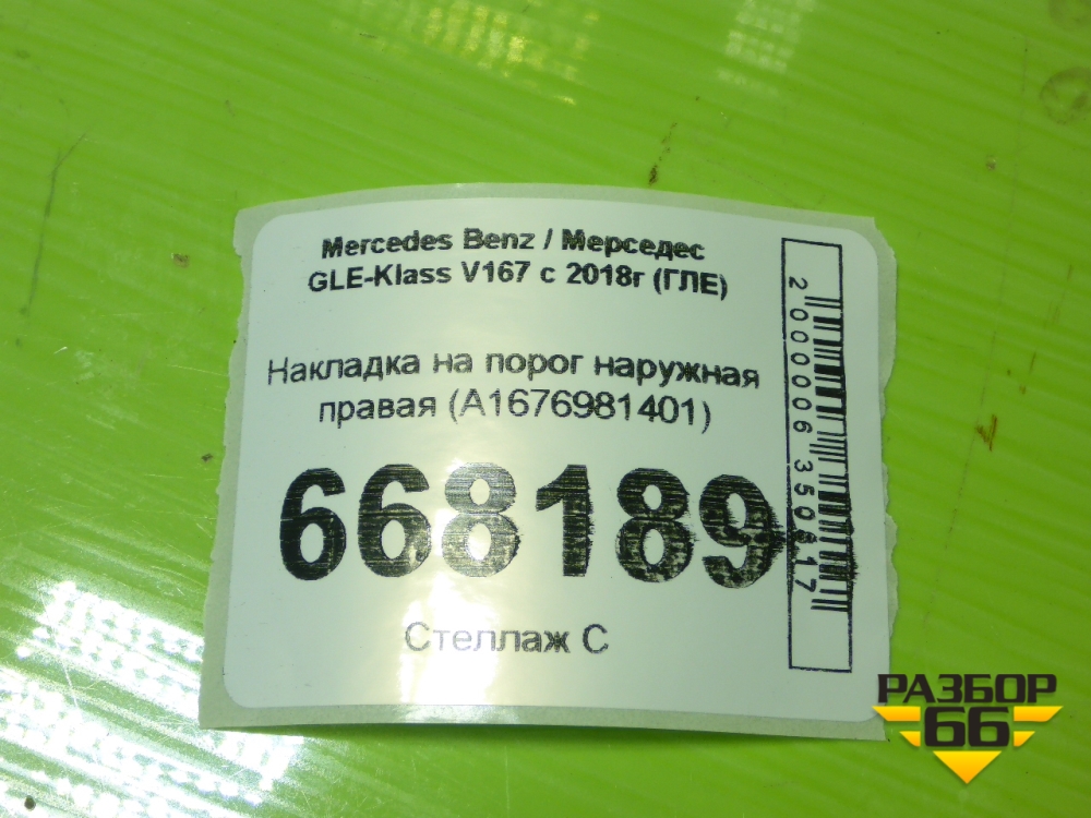 Накладка на порог наружная правая (A1676981401) для Mercedes Benz GLE-Klass V167 с 2018г (ГЛЕ) в Уфе