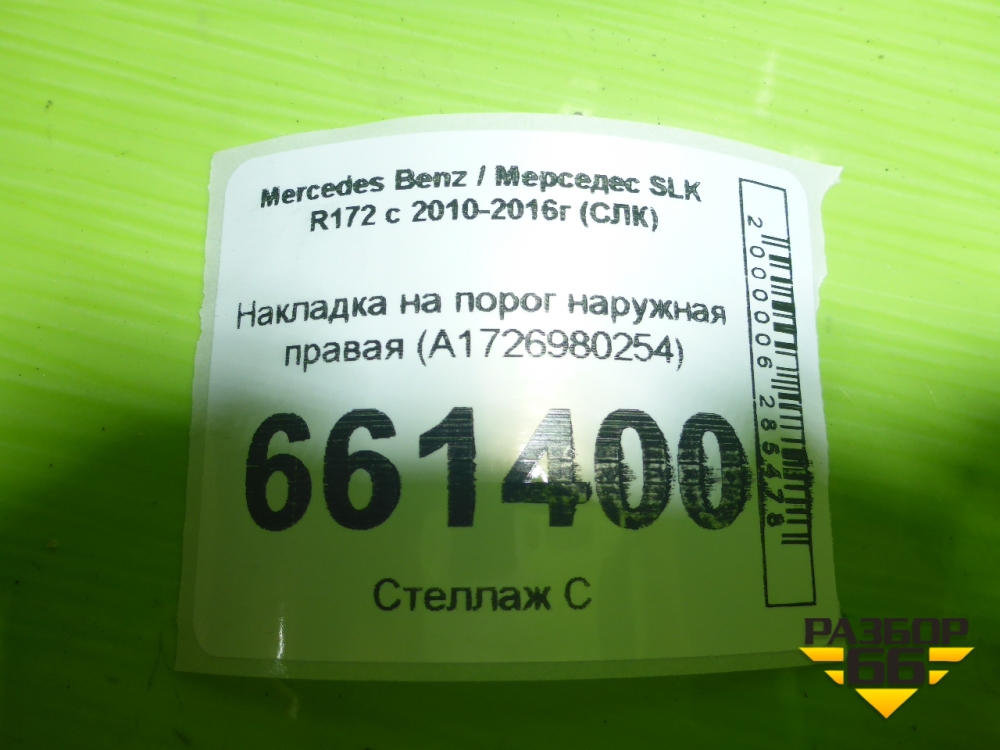 Накладка на порог наружная правая (A1726980254) для Mercedes Benz SLK R172 с 2010-2016г (СЛК) в Уфе