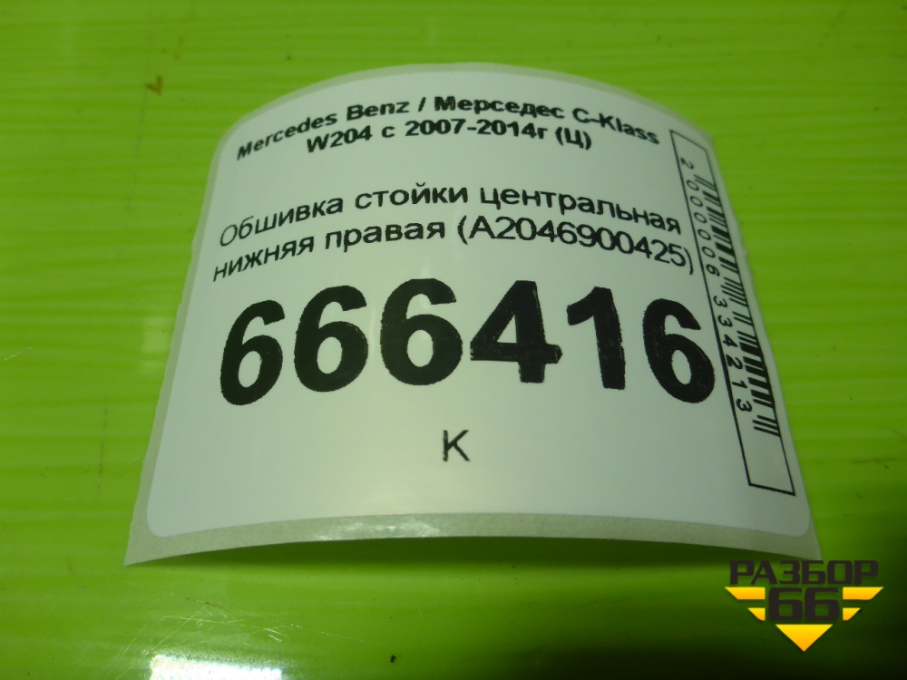 Обшивка стойки центральная нижняя правая (A2046900425) для Mercedes Benz C-Klass W204 с 2007-2014г (Ц) в Уфе